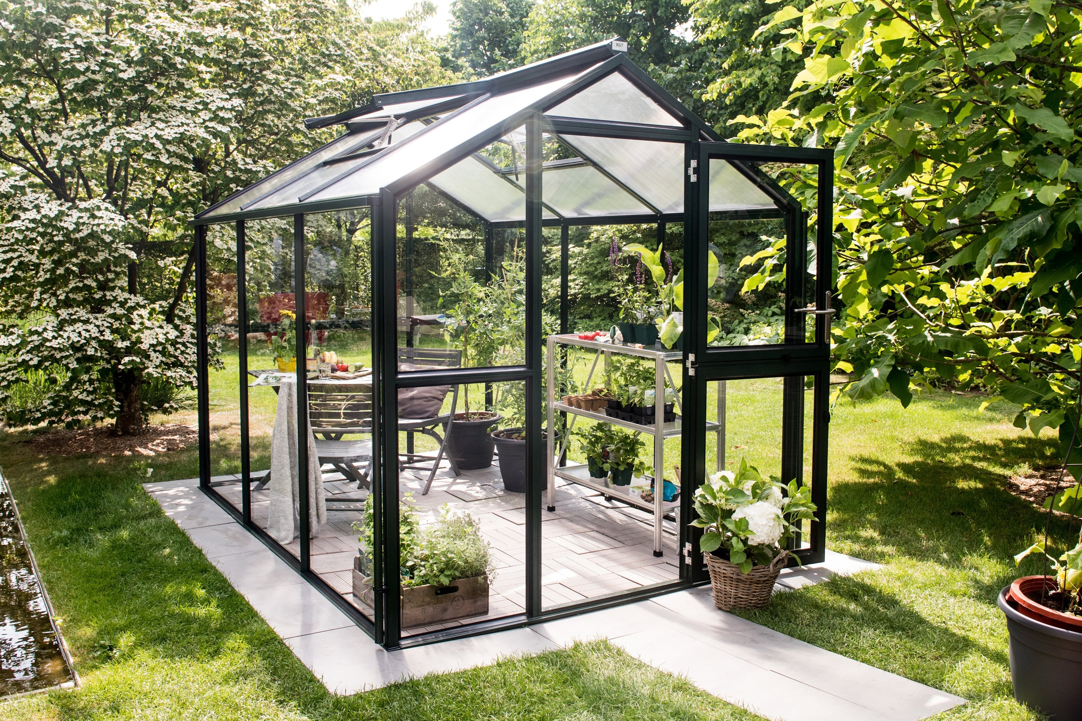 The Solara Glasshouse, crafted in Germany for exceptional quality, is the perfect addition to any garden. Whether you're growing fresh produce or creating a peaceful retreat, its sleek powder-coated frame adds a contemporary touch to any outdoor space.