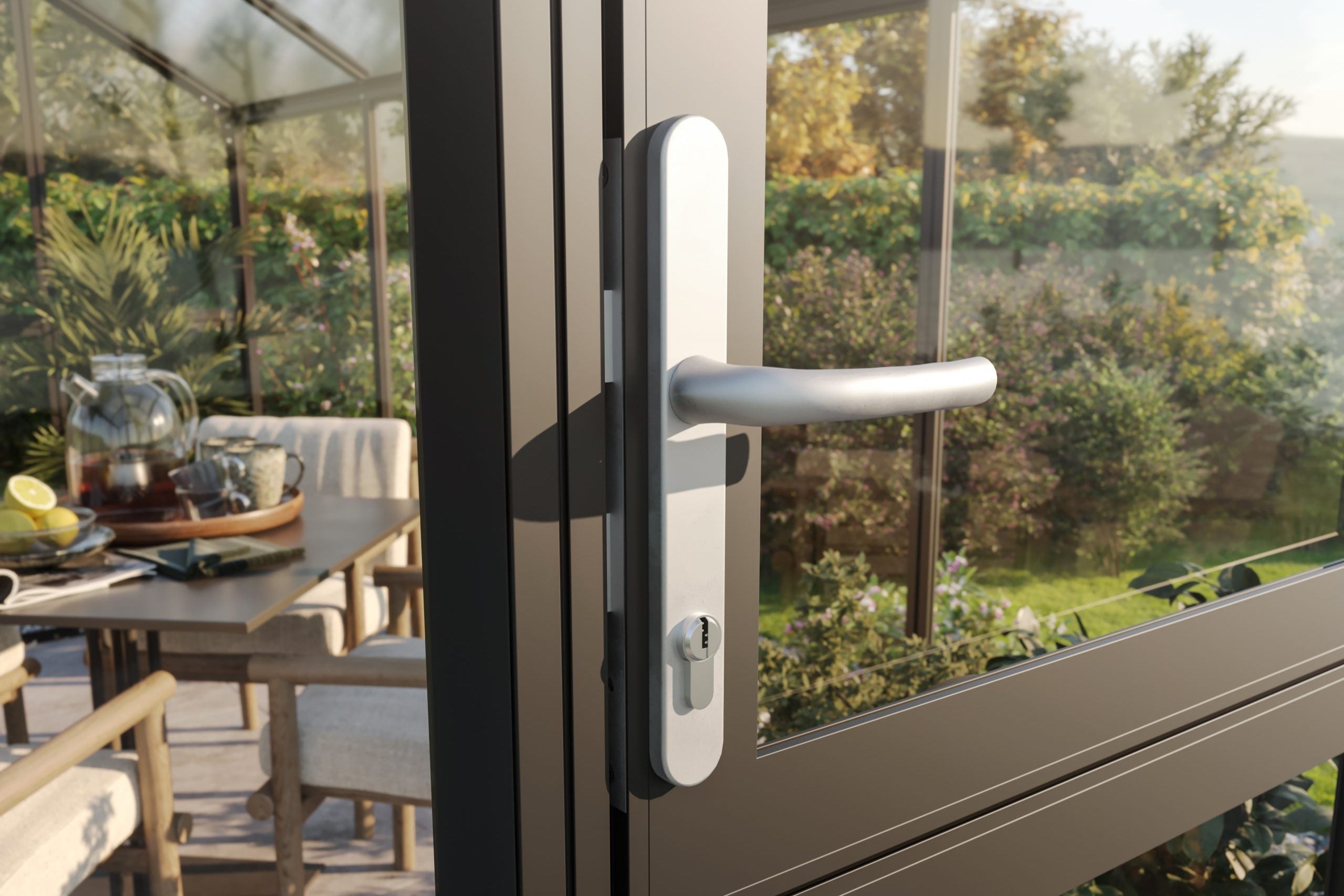 - Powder-coated aluminium framing in contemporary anthracite-grey